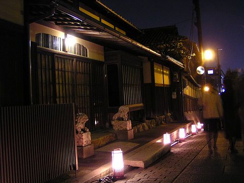 石畳を照らす露地行灯が美しい