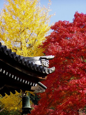 モミジの赤と銀杏の黄色のコントラストは美しい