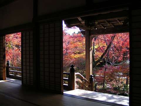 本堂から庭園を眺める