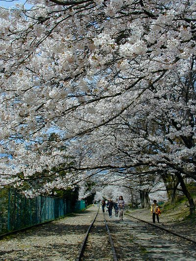 インクラインの軌道敷きは桜のトンネル♪