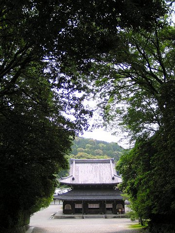 鬱蒼とした木立の向こうに仏殿が現れる