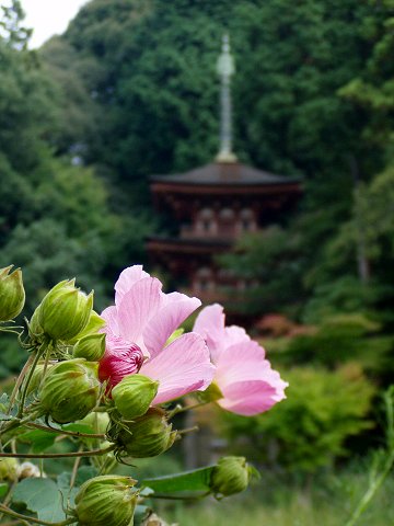 酔芙蓉の花と三重塔