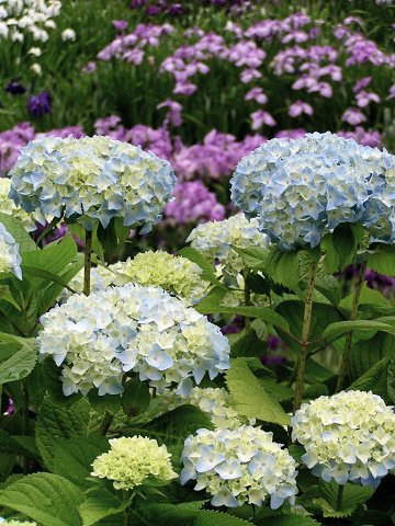 菖蒲をバックに紫陽花も美しかった