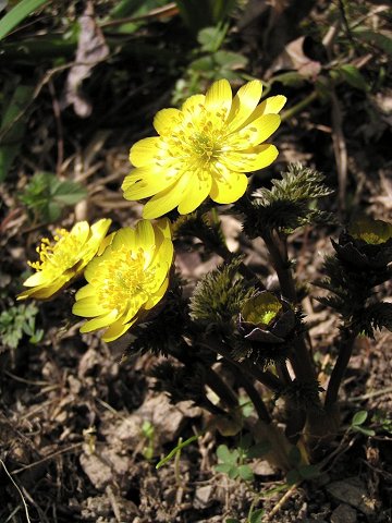 奈良県西吉野村に自生する福寿草