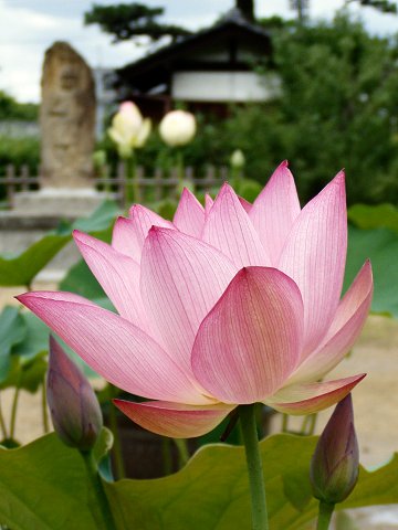 蓮は早朝に勢いよく開くことからポンと音がするという