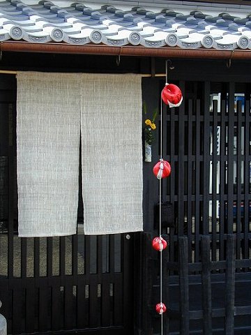 軒先の身代わり猿が揺れる