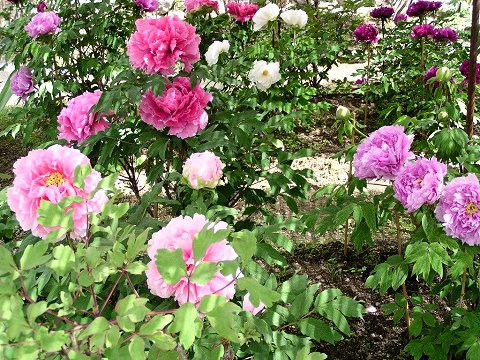 色とりどりの牡丹が咲き競う