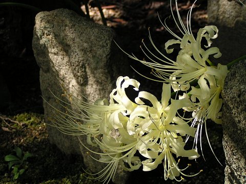 白い彼岸花と石仏