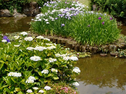 梅雨時は花菖蒲だけでなく紫陽花も美しい