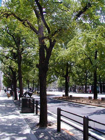 ぎっしり詰まった銀杏の葉が木陰を作る