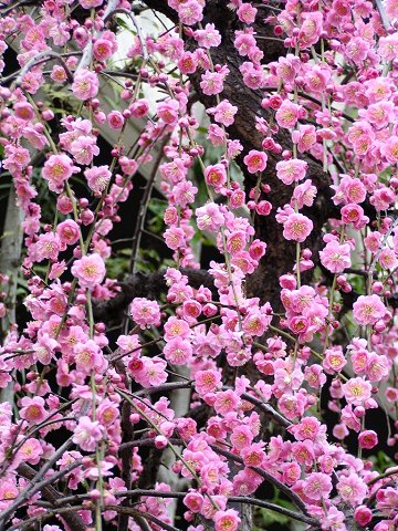 満開の枝垂れ梅