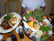シーフードの盛り合わせと、カンガルー・ワニの肉、エミューのソーセージも食べた。美味しかった! |