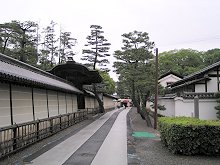 | 妙心寺 花園法皇が自分の花園離宮を改めて禅寺としたことに始まる。臨済宗妙心寺派の本山で、1599(慶長4)年建立の山門や仏殿、法堂など七堂伽藍をはじめ、47もの塔頭が立ち並ぶ。 写真左は総門、右は境内・東林院へ向かう通路 |
