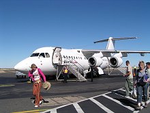飛行機の直行便はなく、途中のアリススプリングスで乗り継ぐ。機材はBAe146という64人乗りの小型ジェット機。