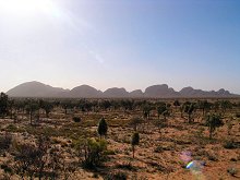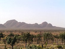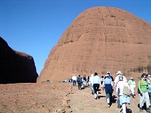 バスはカタ・ジュタ展望台へ。ここからの眺めは雄大さを感じた。その後オルガ渓谷へ向かった。間近に見たとき、巨大なドームがなんとも奇妙な岩の集まりに見えた。すごく強い風が谷間を吹き抜けている。 |