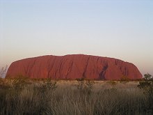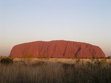 この岩がもっとも美しいのは日没のときだ。約5キロ離れたところにサンセットポイントがある。沈んでいく太陽に照らされて刻々と色を変え、燃えるように真っ赤に染まっていく姿には感動した。遠くまで来てよかった! |