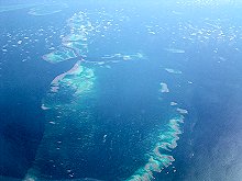 | 早くも帰国の日。ケアンズの上空を過ぎ、飛行機の窓から見えたグレートバリアリーフ! 高度1万メートルからの美しいリーフの風景にうっとり また近いうちにもオーストラリアへ来たいな!! |
