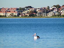 | フェリーから見たパース市内 | スワン川にはたくさんの鳥が遊びに来ていた♪ | |