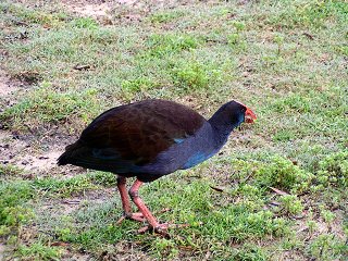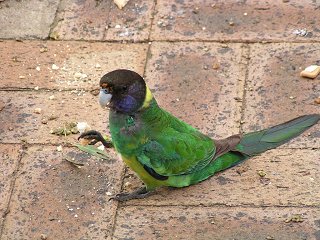 パンのかけらを拾って器用に食べるインコ