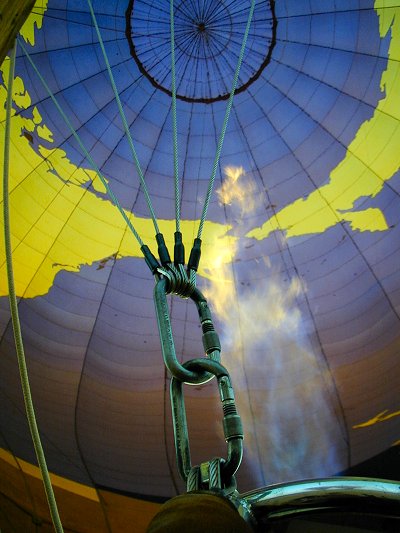 気球内の空気を暖め、いざ出発!