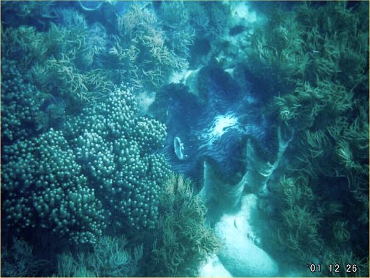 (珊瑚の間で口を開けている・・・ミコマスケイ・クルーズ)