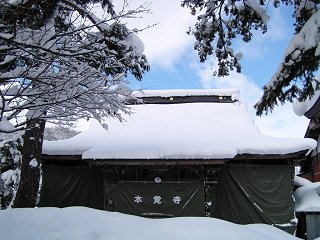 お寺の本堂は雪から守るため