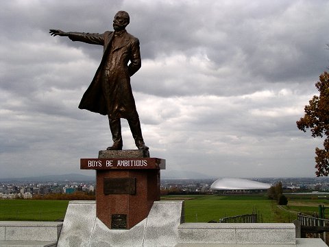 クラーク博士像の後ろには札幌ドームが見える